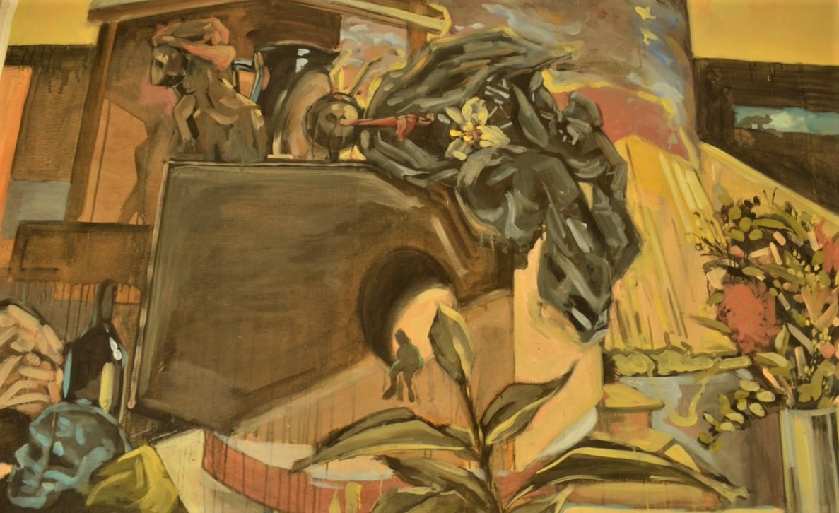 Narcissus (2021) is another work in the Greek mythology inspired series. Here the infamous tale of Narcissus absorbed by his reflection is novelly recreated in still life form. Personal and symbolic items are used to represent the fragmented aspects of his psyche, and inspire a broader reflection of the influences shaping our collective identities as a whole.