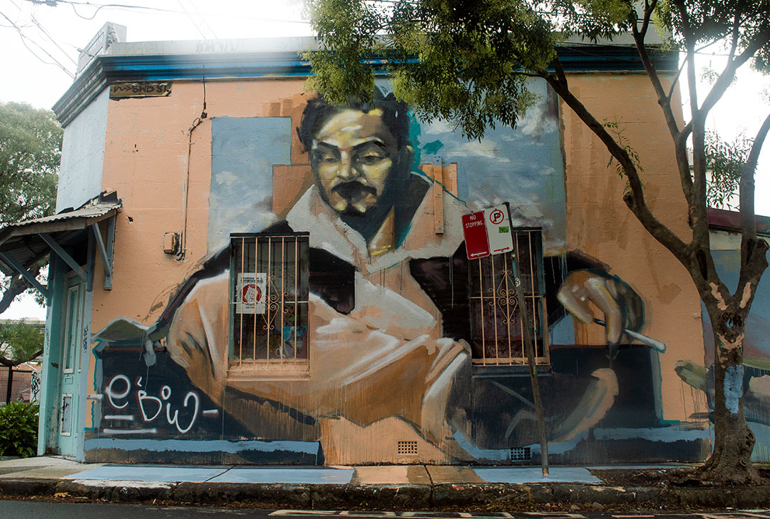 Acrylic, Charcoal, oil on canvas / Aerosol Mural